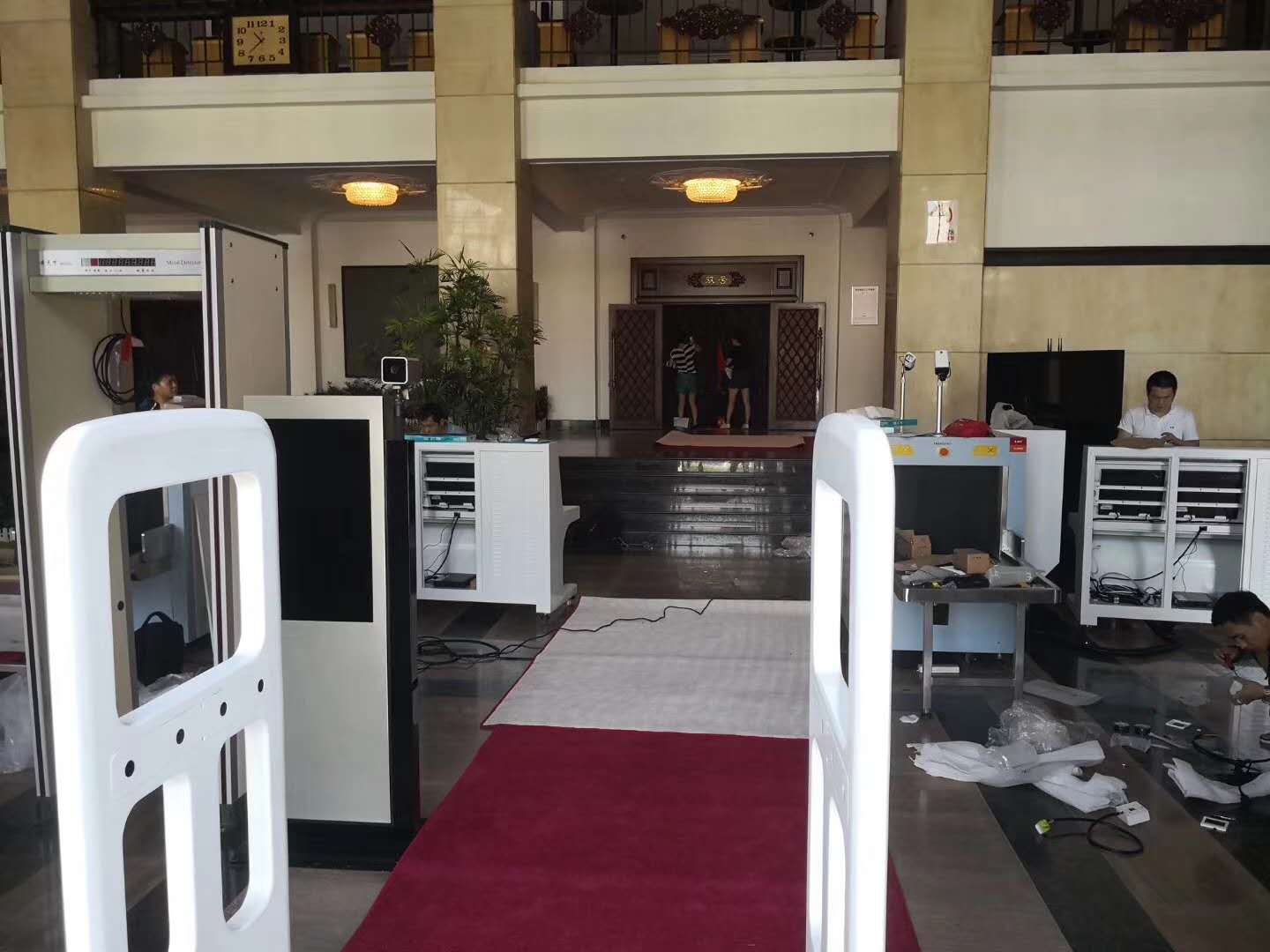 為助力此次會議順利召開,安天下在連夜在武漢劇院設(shè)置了多個安檢點(diǎn),投入使用的設(shè)備類型涵蓋多個產(chǎn)品系列,包括 X射線安全檢查系統(tǒng)、通過式金屬探測安檢門、移動式車底檢查系統(tǒng)等多種安檢設(shè)備,確保安檢工作萬無一失。